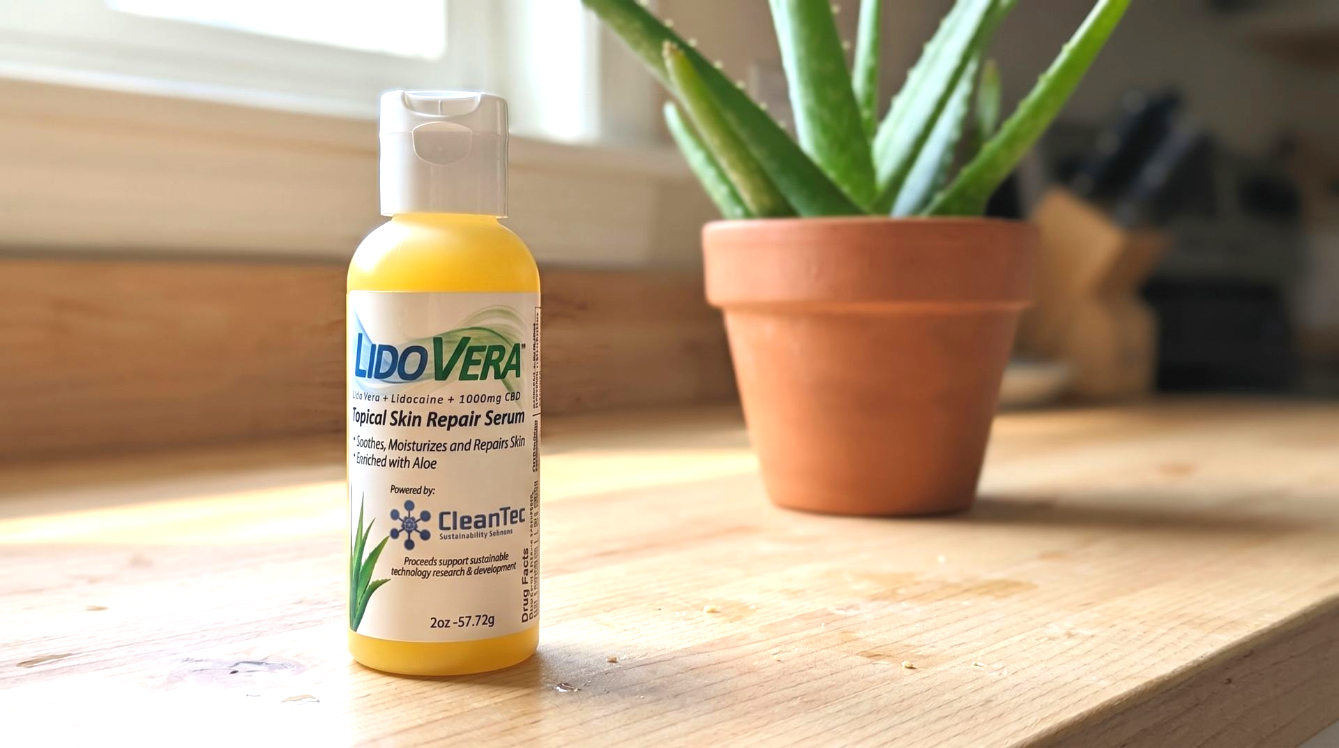 LidoVera is an aloe and lidocaine repair serum originally created for sunburn relief. It is now the go-to solution for various skin issues.